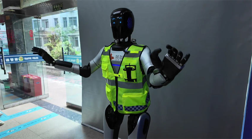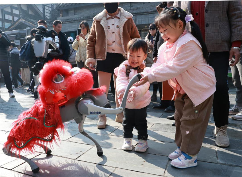 正在宽窄小路,四川中科宇翼科技无限公司的人形机械人“小宇”正正在取旅客互动,为现场带来充满科技感的讲解体验。