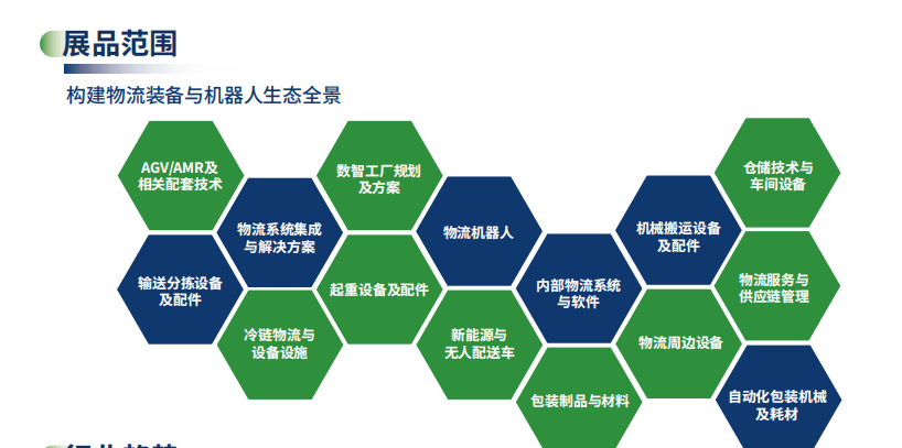 展会将汇聚包罗大福、德马泰克、胜斐迩等系统集成商,合力、杭叉、林德等叉车巨头,ABB、极智嘉等机械人领军企业,以及康耐视、西克等焦点部件供应商,配合展现从智能配备到软件系统的完整生态。